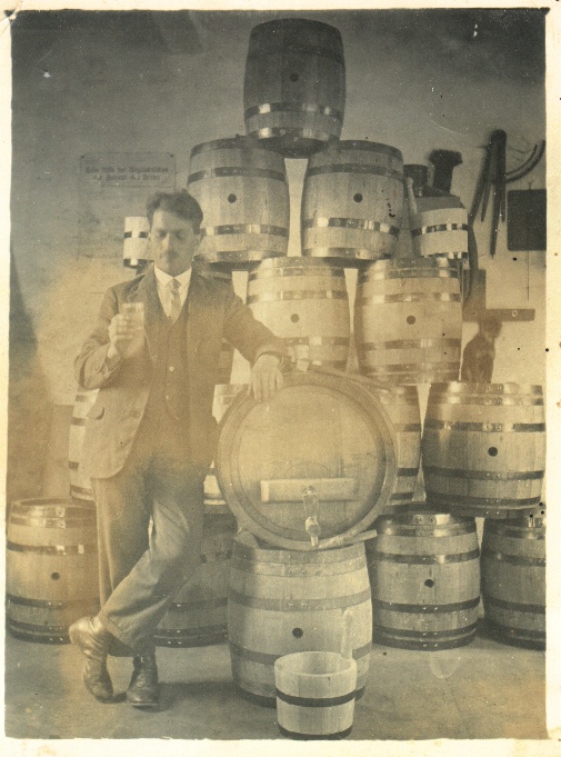 Die Kueferei von Georg Fischer anno 1928. Die beiden Holzzirkel oben rechts im Bild werden